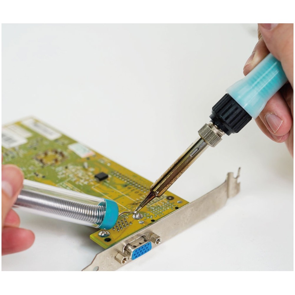 Conjunto de soldadura ideal para estudiantes, aficionados, pequeños trabajos, etc. Apto para realizar soldadura sin plomo.