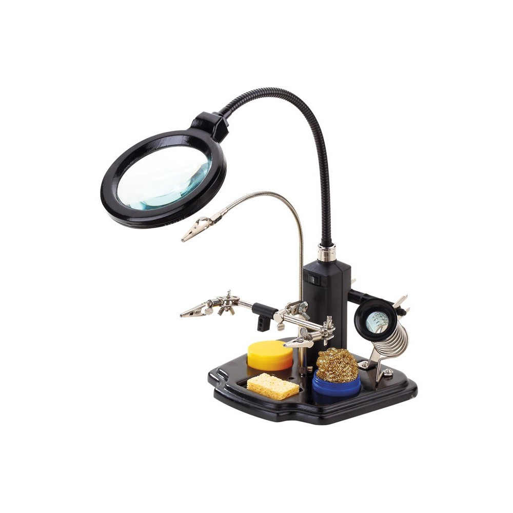 Soporte para soldador con lupa de Led y pinzas de manos libres - HRV7571