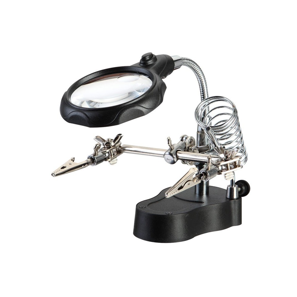 Producto Soporte soldador, lupa con 2 LED y pinzas de cocodrilo