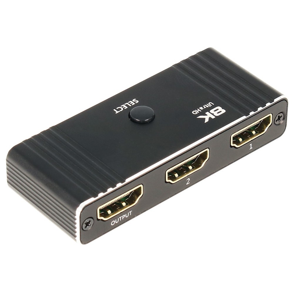 Este conmutador manual con mando a distancia, bidireccional de 2 puertos HDMI v2.1, tiene la ventaja de poder utilizarse en ambos sentidos, tanto de entrada como de salida de señal HD.