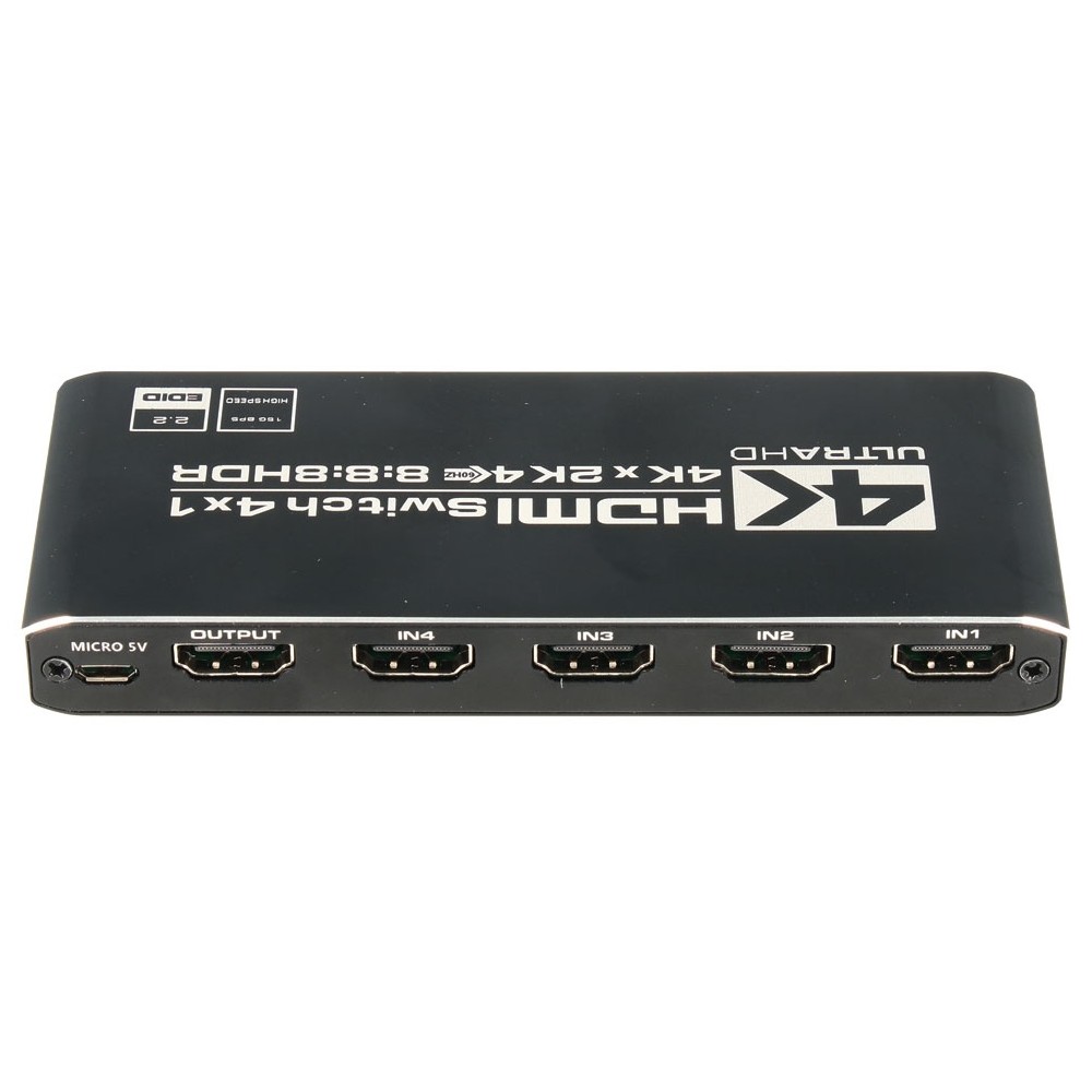 Este conmutador HDMI 2.0b, 4K*2K a 60Hz, 3D admite 4 entradas de HDMI para enviarlas a una salida, soporta salida sincrónica de 32 bits y sonido analógico, permite cambiar entre cualquier fuente de entrada a través del mando a distancia o el selector manual del conmutador.