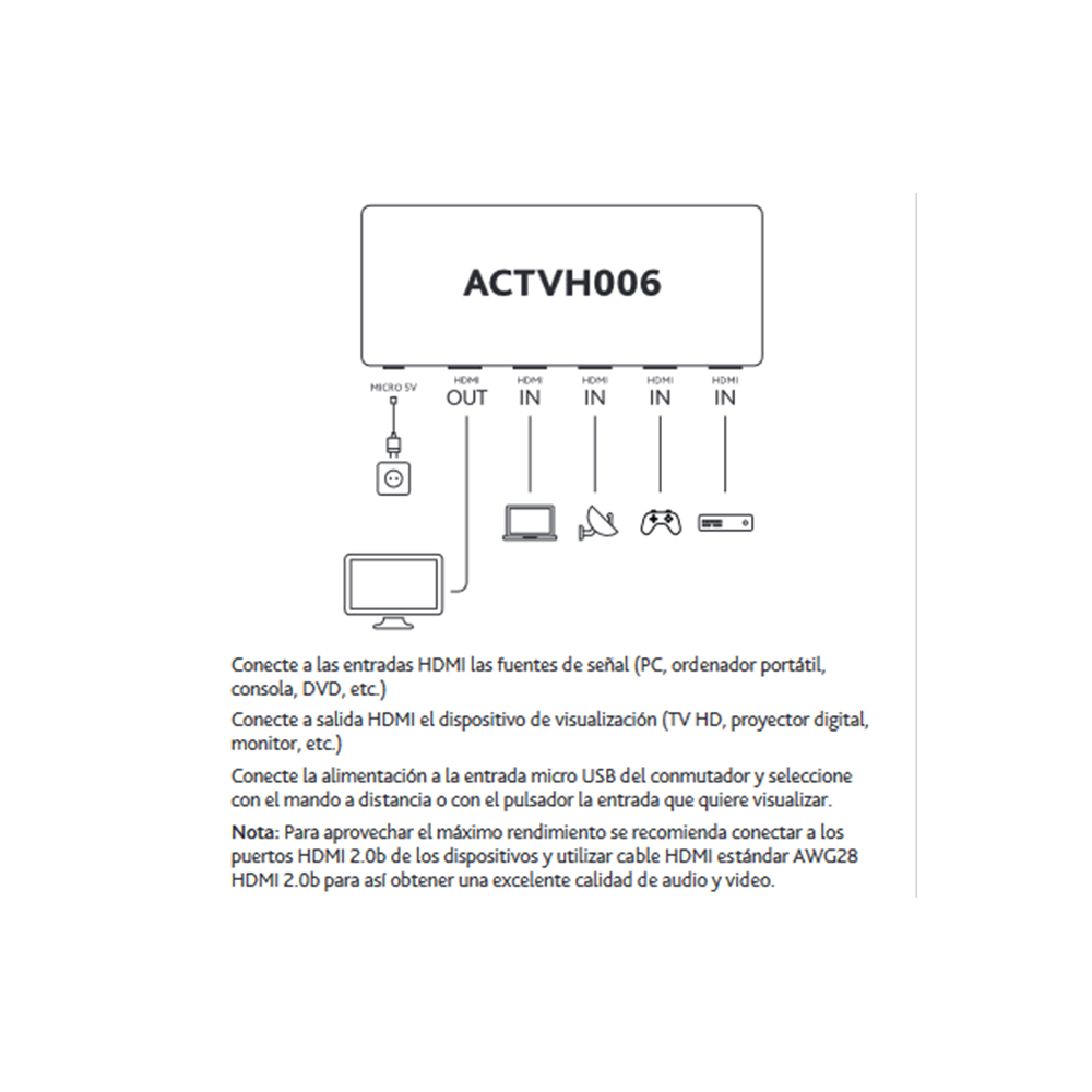 • Dispositivo: Switch HDMI 4 Entradas 1 Salida, con telemando