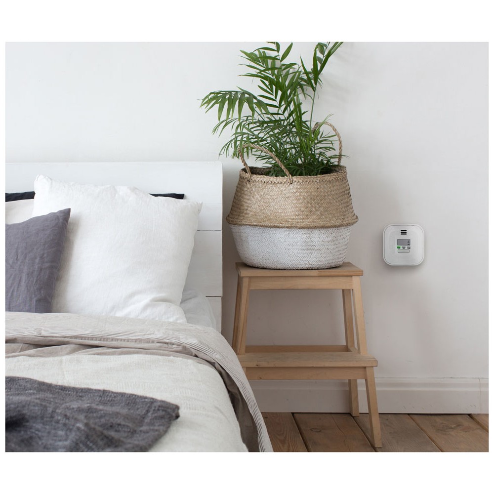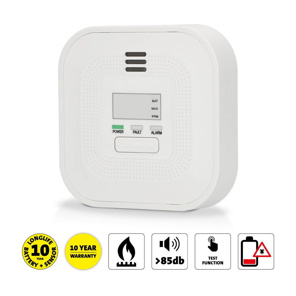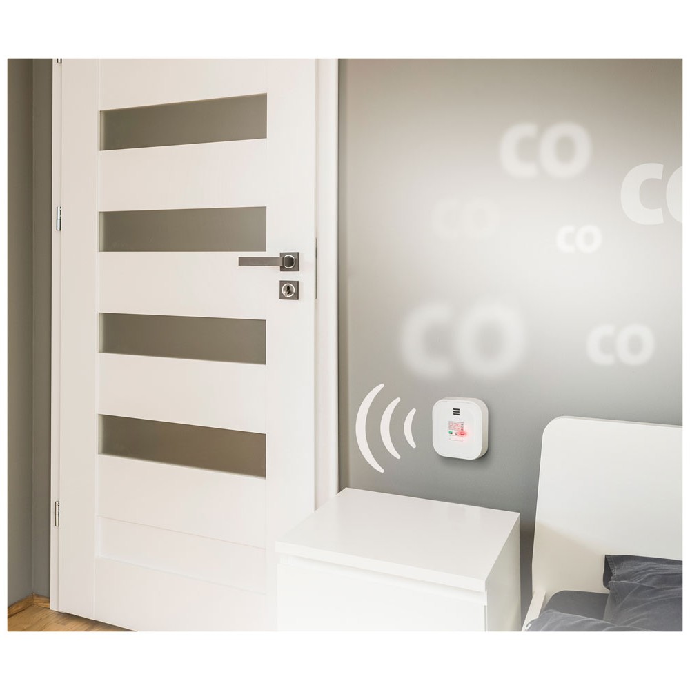 Detector con potente alarma >85dB que le avisa inmediatamente en caso de detección de monóxido de carbono (CO). El sensor y la batería de litio integrados tienen una vida útil de hasta 10 años garantizando un funcionamiento óptimo de la alarma durante un largo periodo. Está equipado con pantalla e indicadores luminosos para que pueda ver las notificaciones de manera fácil y clara.