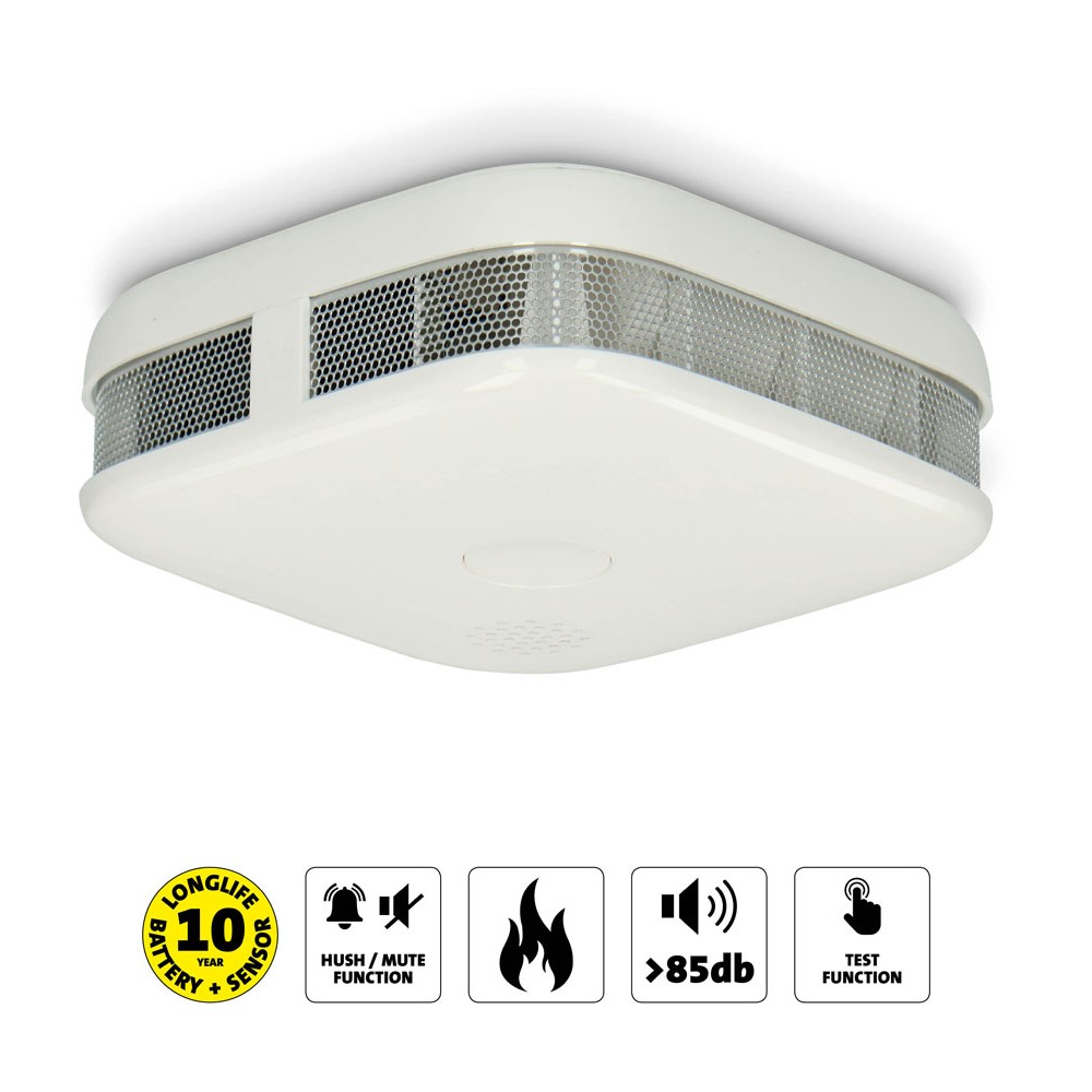 Los detectores de humos son muy aconsejables en los hogares, ya que pueden suponer la diferencia entre la vida y la muerte. Este detector de humos extra pequeño responde rápidamente al detectar humos procedentes de incendios latentes emitiendo una señal acústica muy fuerte de 85dB.