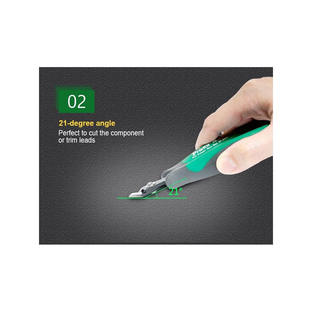 Cabeza de alicate en ángulo de 21 grados, perfecta para cortar el componente o recortar cables.