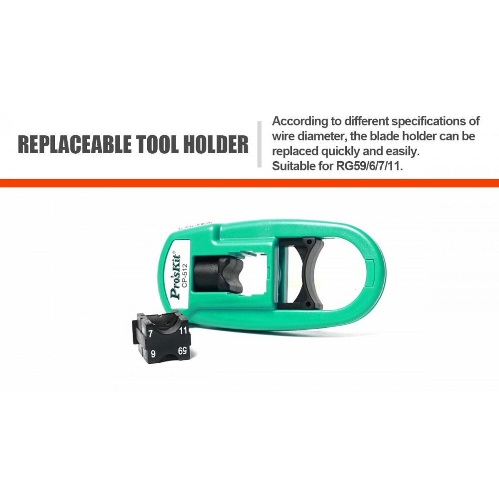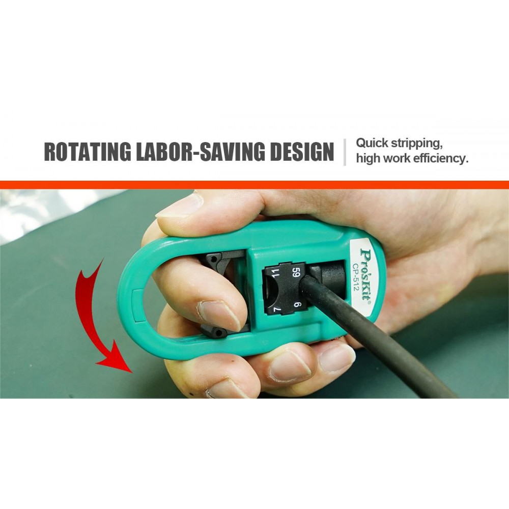 Pelacables coaxiales en un sólo paso por rotación de Proskit - CP-512