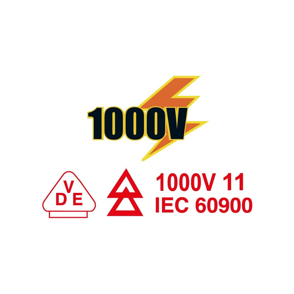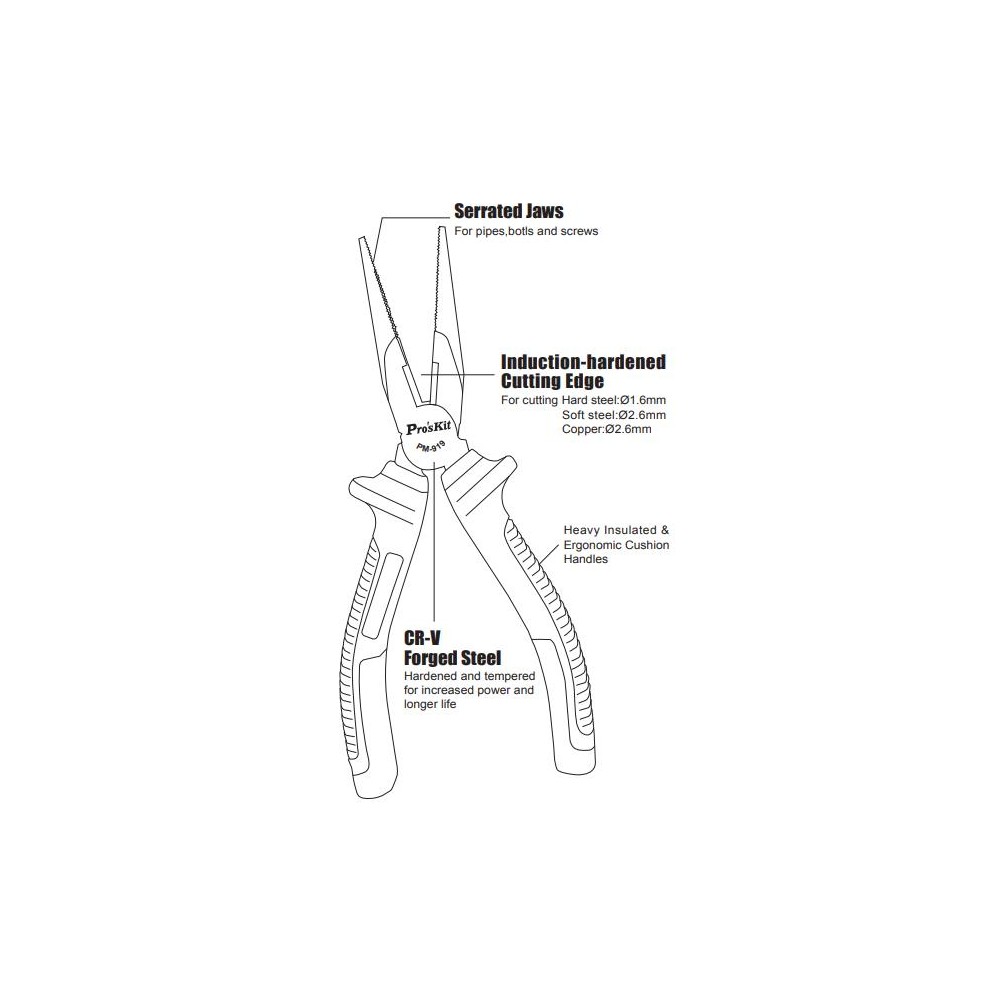 Alicates Pro'sKit con certificación VDE y filos de corte endurecidos por inducción con acabado pulido de teflón. Incorporan mangos ergonómicos para mayor comodidad y control. Capacidad de corte conforme a las normas de seguridad IEC 60900 y DIN 1000V, y cuentan con la marca GS.  Fabricado en CR-V, forjado en caliente, más duradero. Recubrimiento de níquel-hierro para protección contra la oxidación. Asas ergonómicas moldeadas de alta visibilidad con agarre acolchado para máxima comodidad.