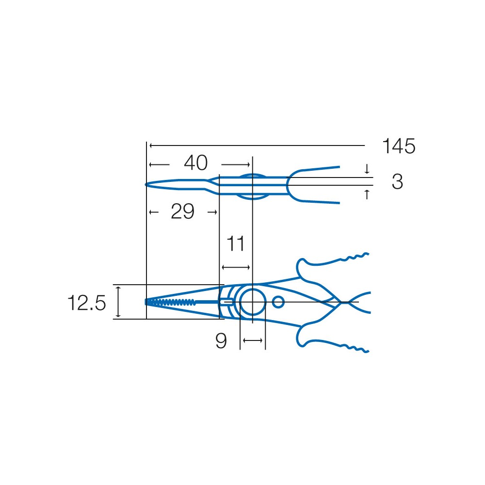 - Punta: Planas moleteadas de 29,0x12,5mm