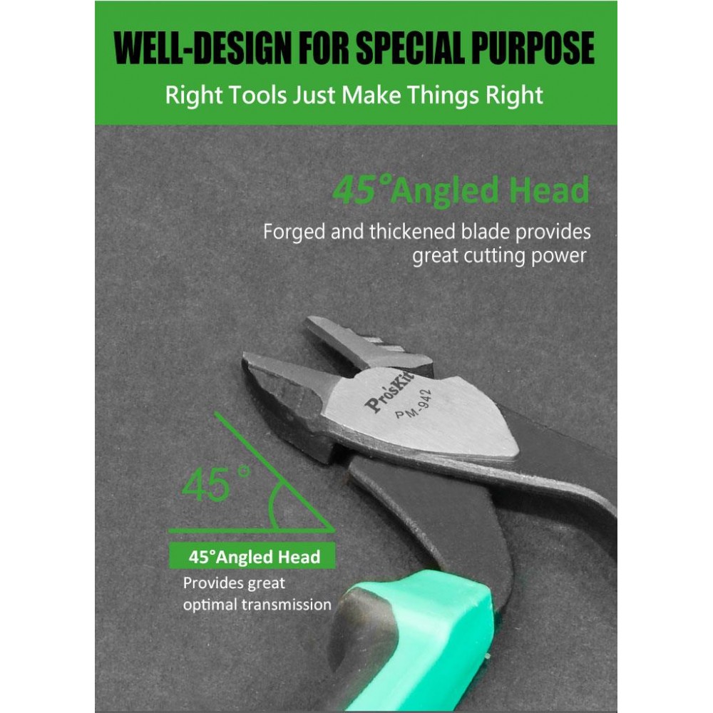 PM-942 Alicate de corte con mandíbulas en ángulo 45º (170 mm) de Proskit