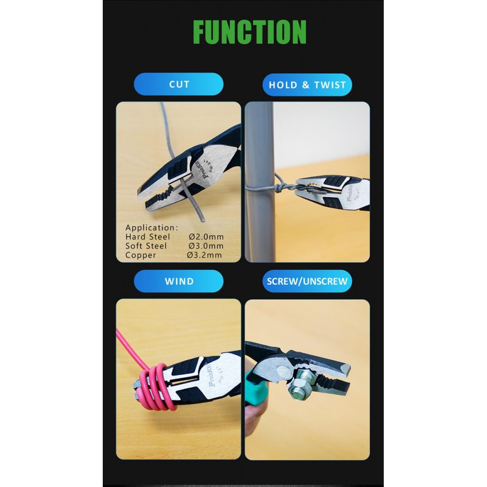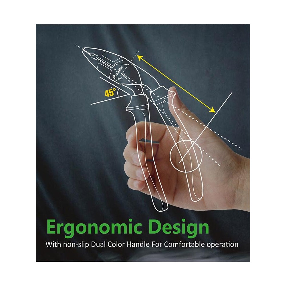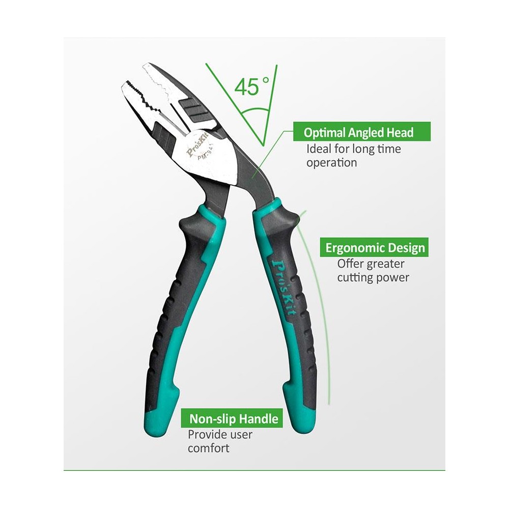 PM-941 Alicate universal con mandibulas en ángulo 45º (189 mm) de Proskit