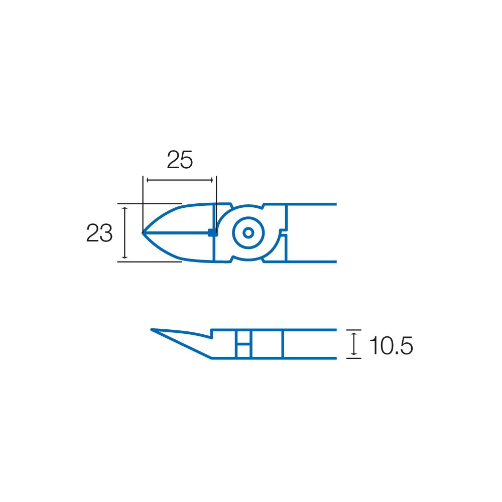Ángulo específico diseñado para cortar al ras piezas de componentes plásticos o materiales blandos como el plomo.