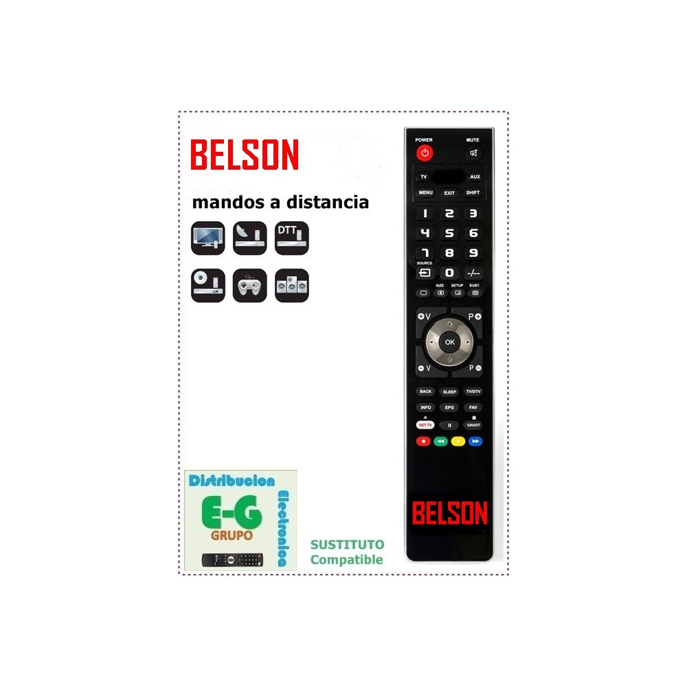 Para sustituir tú mando a distancia original BELSON. Sustituye a todos los modelos BELSON del mercado. Diseñado con una nueva e innovadora tecnología, se puede programar para funcionar en tu TV, DVD, VCR, SAT, TDT, AUX, HIFI, VIDEOCONSOLAS, PROYECTORES.. .  Con este mando se puede acceder a todas las funciones. Es un Mando de Sustitución del OriginalNo es un Mando Universal. No requiere código de configuración. Nosotros Te enviaremos su sustituto BELSON programado para el modelo que nos indiques. Pon las pilas AAA (no incluidas), y comienza a utilizar tu Mando.