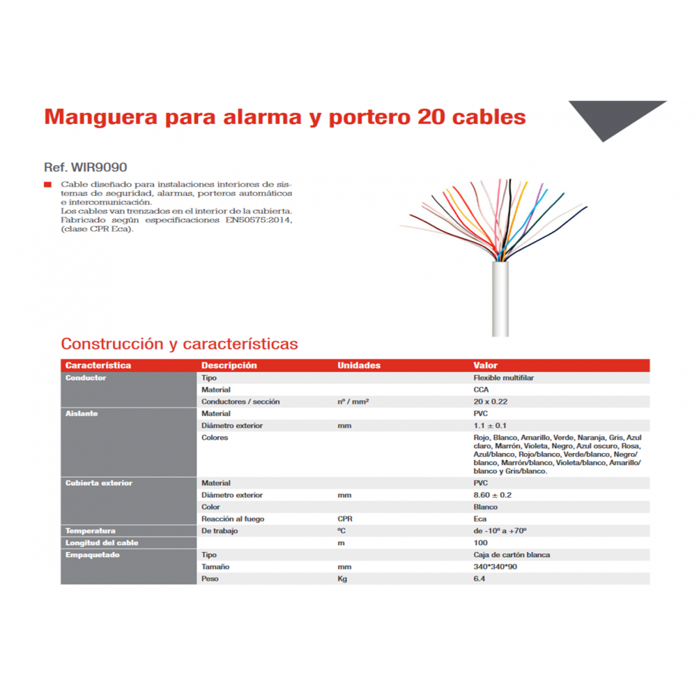 Manguera de 20 cables en CCA para alarma y portero con CPR - WIR9090