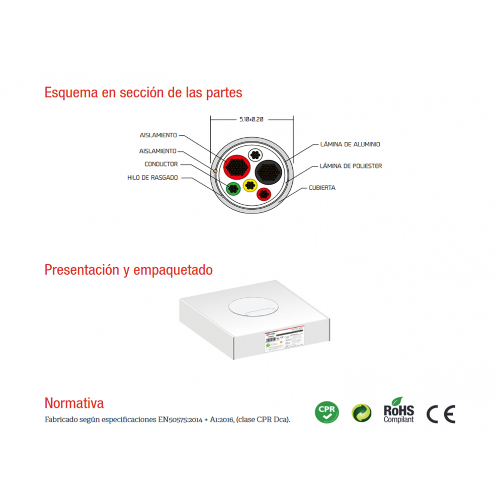 Rollo de Cable para alarma y portero libre de Halógenos LSZH y CPR 100M - WIR9092