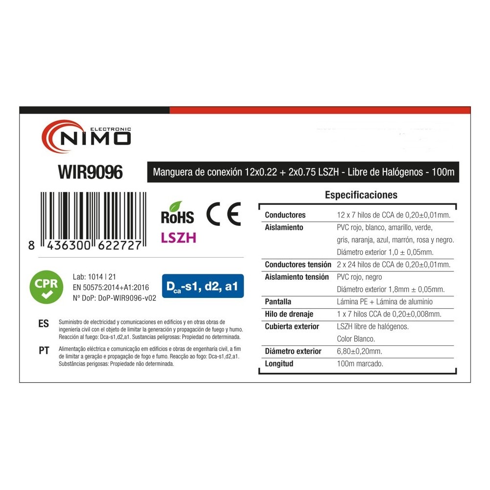 Rollo de Cable para alarma y portero libre de Halógenos LSZH y CPR 100M- WIR9096