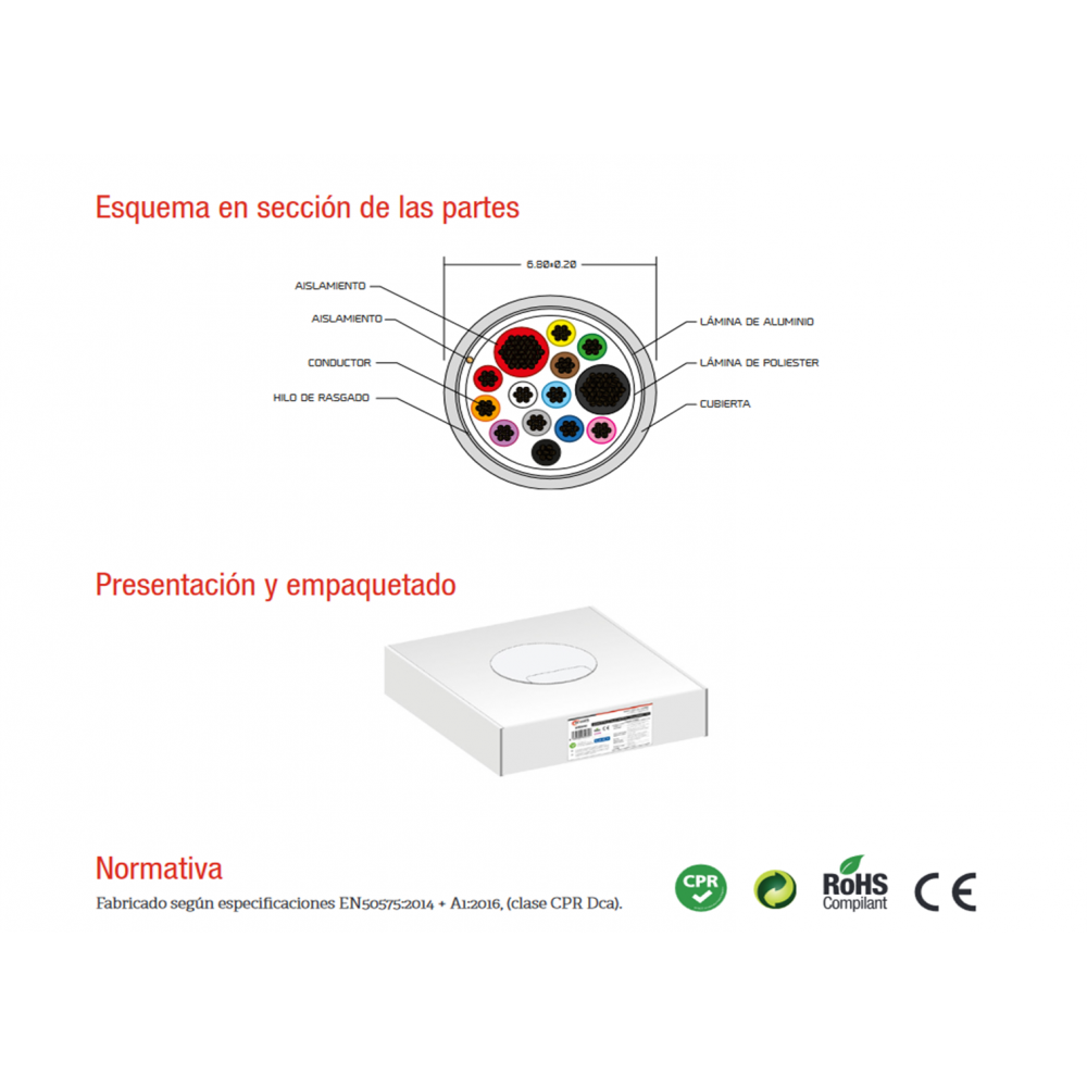 • Tipo: Manguera de 14 cables libre de Halógenos LSHZ, 100m
