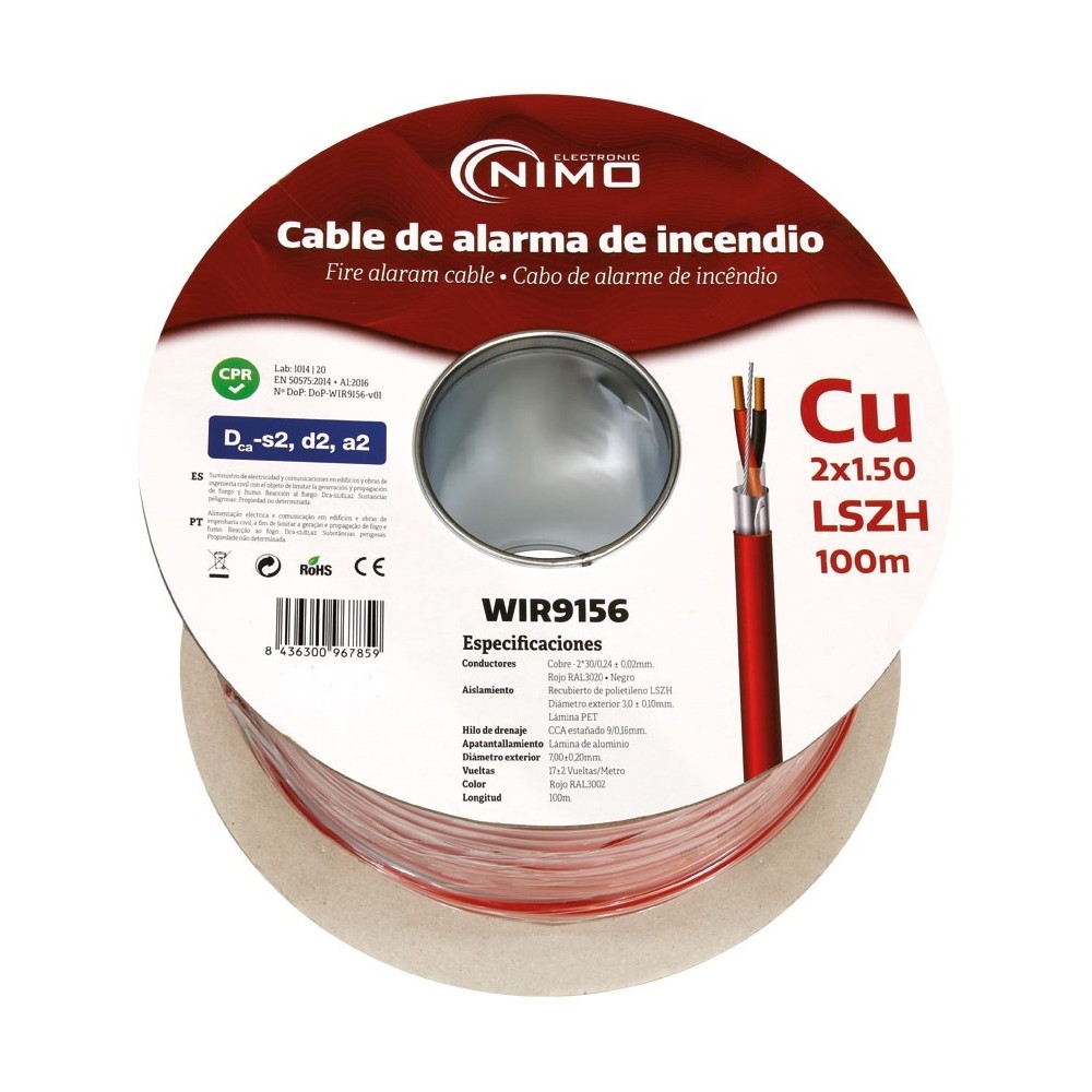 Rollo de Cable blindado para alarma de incendios Cu 100m - WIR9156