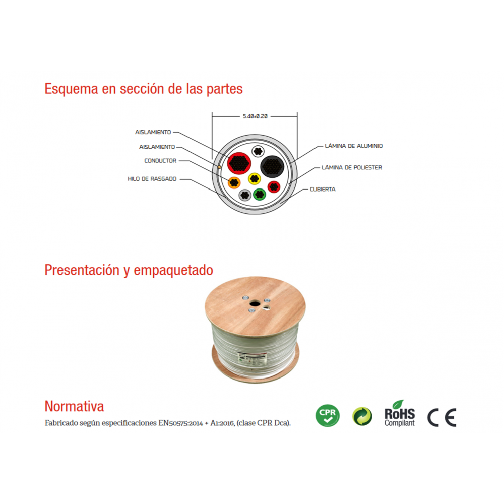 • Exterior: Funda blanca 5,4mm. +/-3%, Libre de Halógenos LSZH