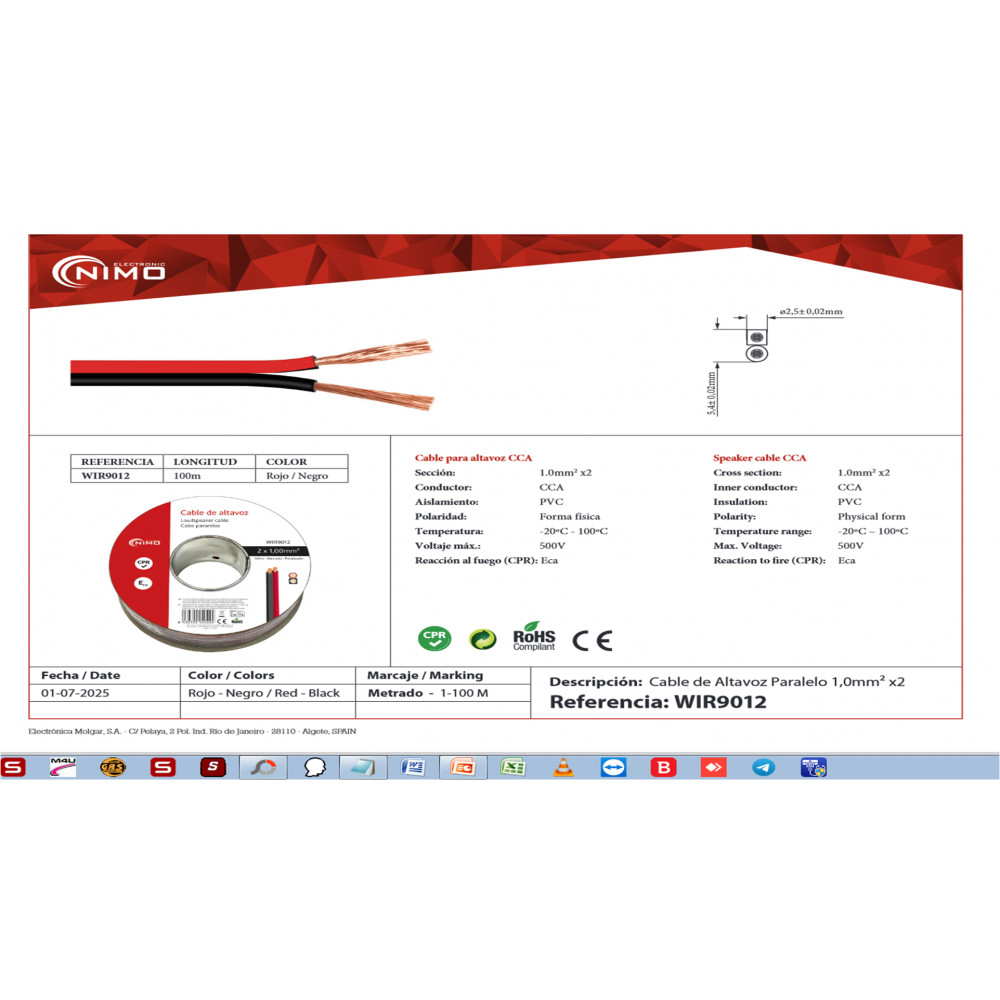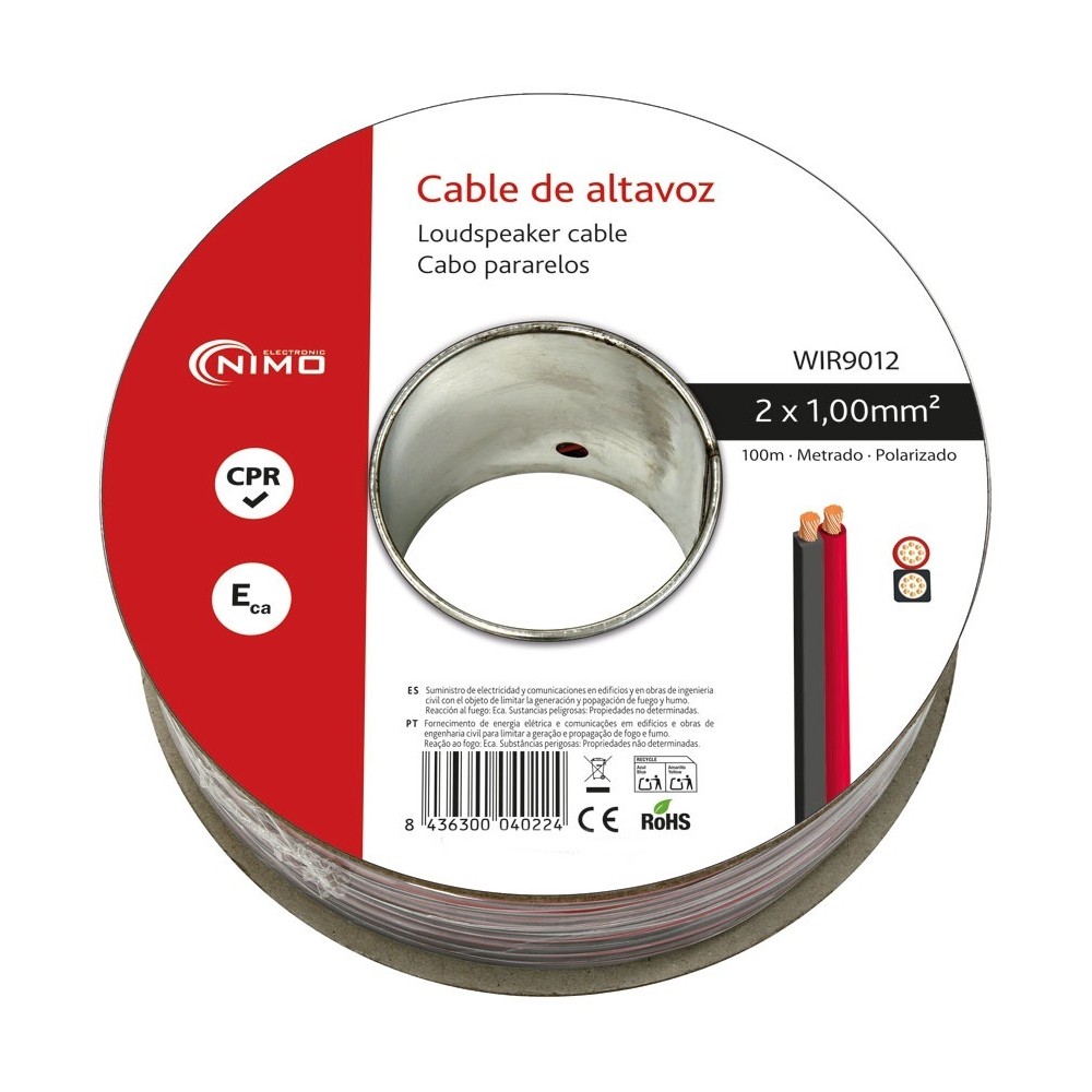 Rollo de cable de altavoz 2x1.00mm Rojo/Negro de 100m - WIR9012