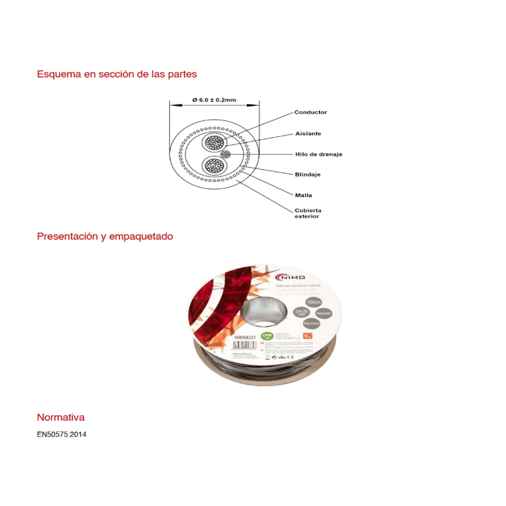 Rollo de cable para audio de bajo ruido, estéreo apantallado, extra flexible, redondo, con hilo de drenaje y lámina de aluminio.