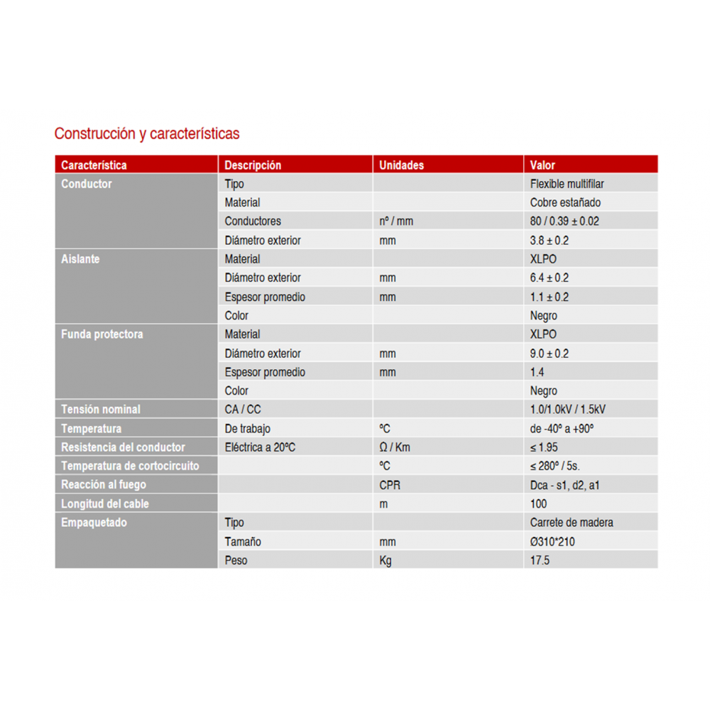 • Tipo: Cable para conexiones fotovoltaicas tipo H1Z2Z2-K