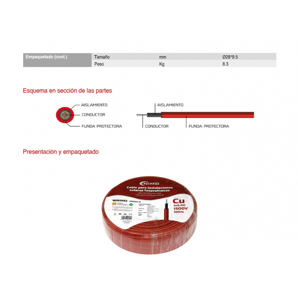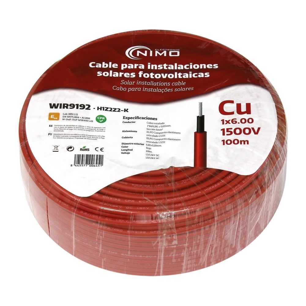 Cable para conexión de Placas Solares Cu-Sn 6.0mm2 Doble capa XLPO Rojo 100m