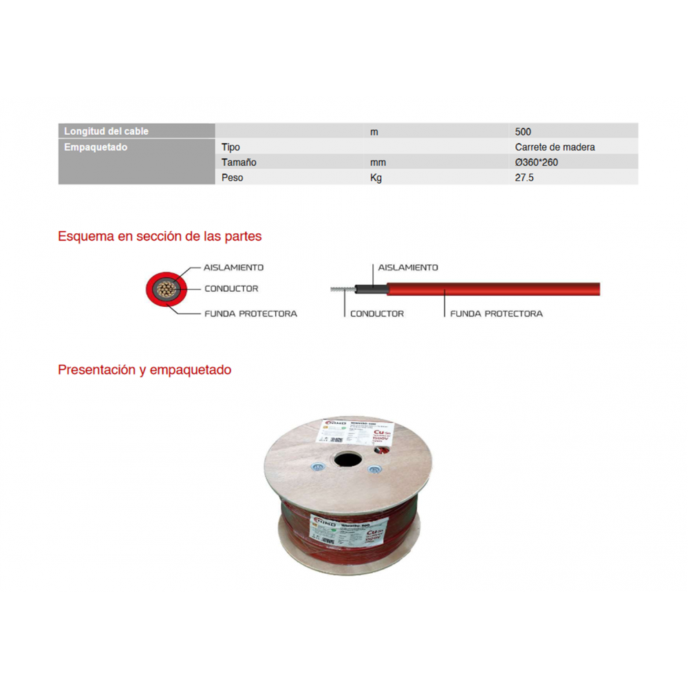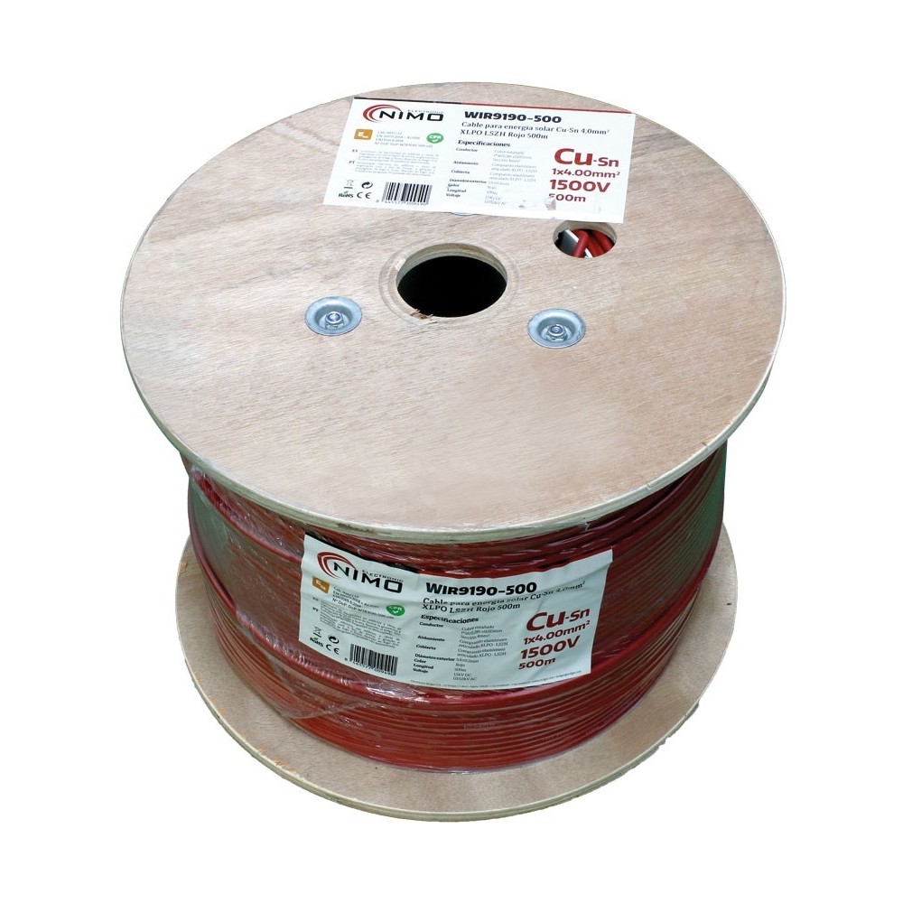 Cable para conexión de Placas Solares Cu-Sn 4mm² Doble capa XLPO Rojo 500m