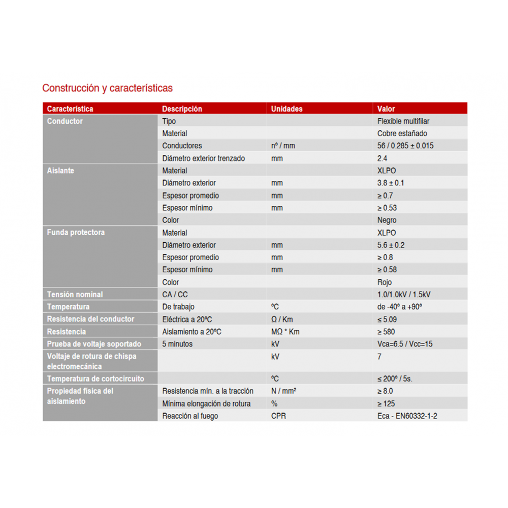 • Tipo: Cable para conexiones fotovoltaicas tipo H1Z2Z2-K