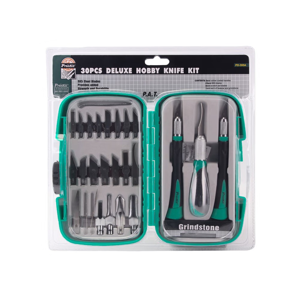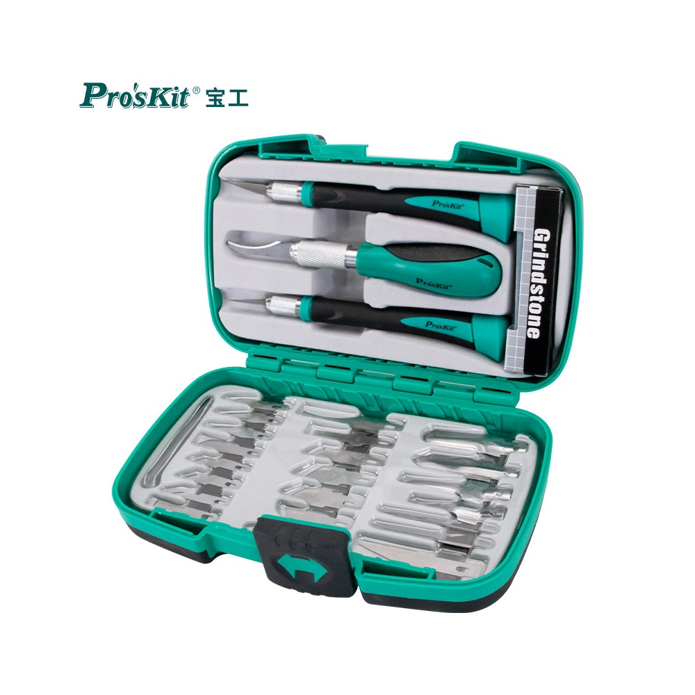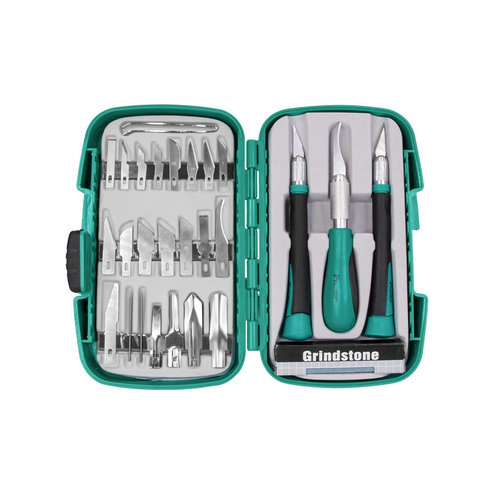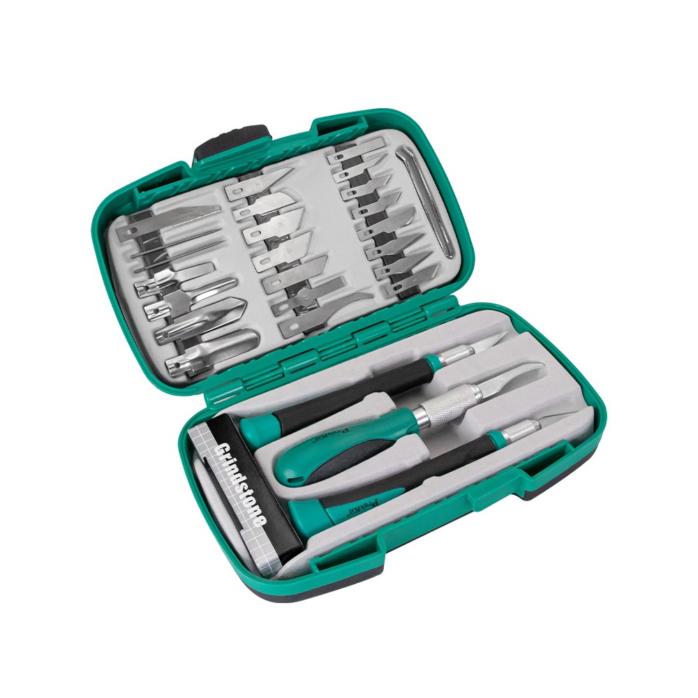 Estuche con 25 cúter y piedra de afilar para hobby de Proskit - PD-395A
