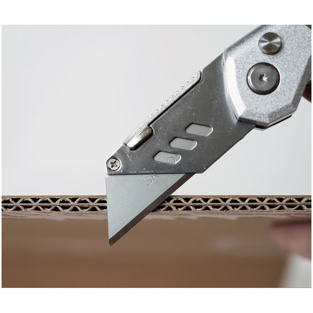 Navaja plegable con doble función, cinta métrica y navaja multiusos.
