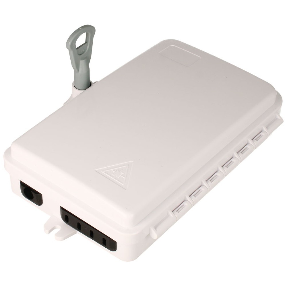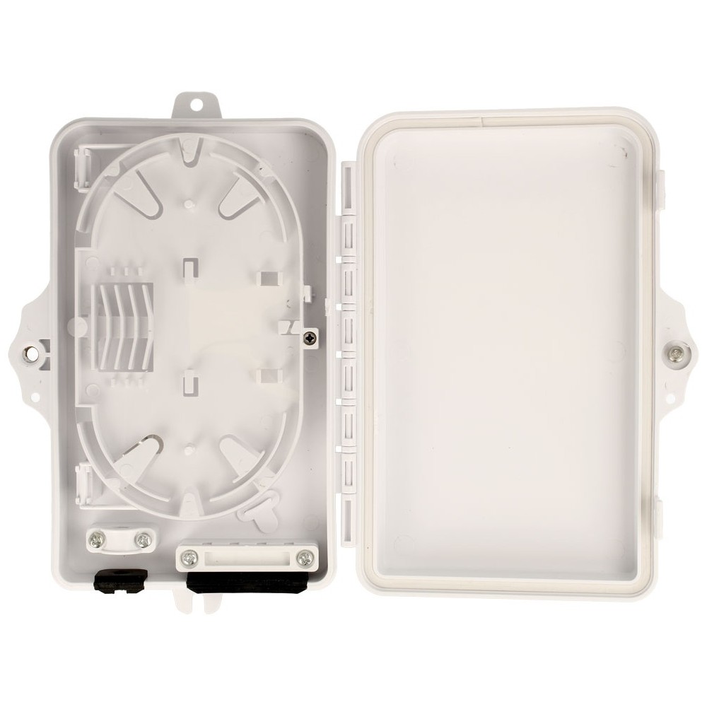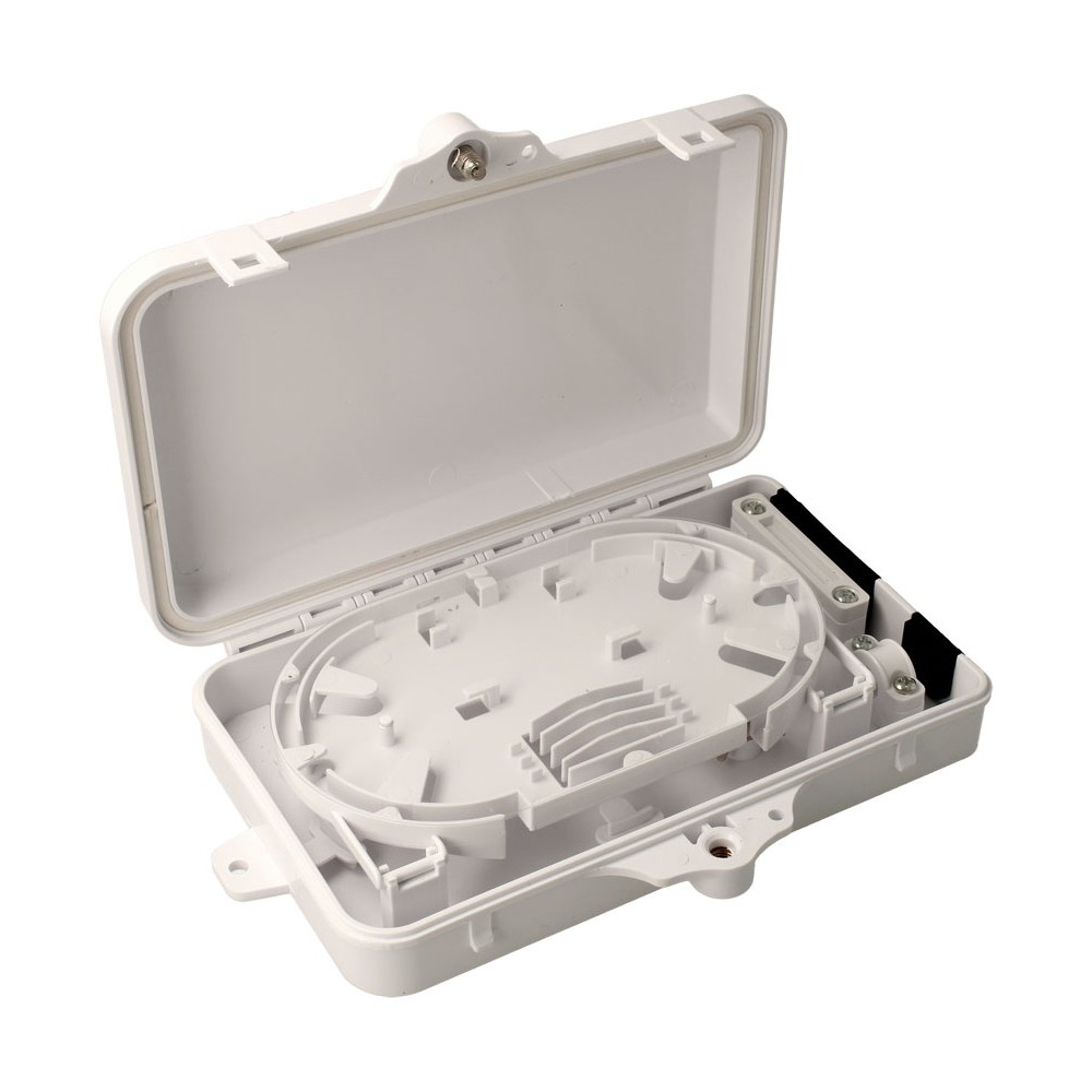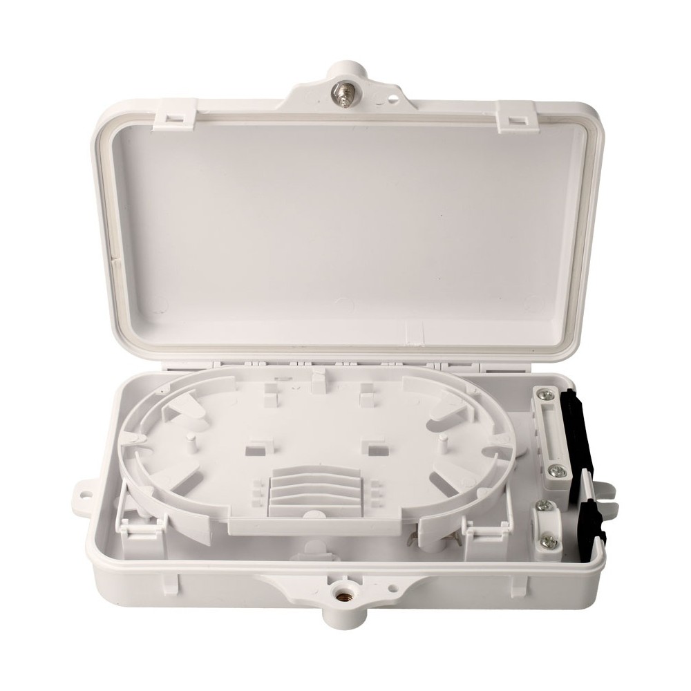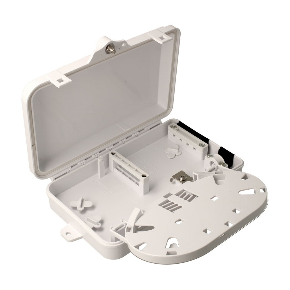 Esta caja terminal de distribución de fibra es capaz de albergar hasta 4 puertos.