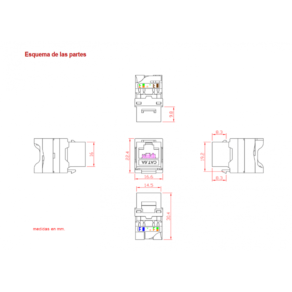 | Tipo | Conector Keystone RJ45 Cat.6A UTP hembra |