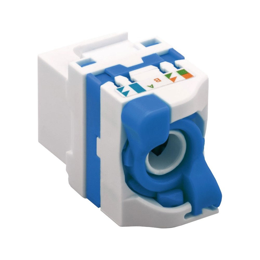 Conector tipo Keystone RJ45 hembra usado para la terminación del cableado Ethernet, se conexiona al cable sin necesidad de
