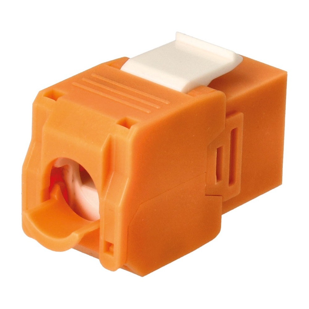 Conector tipo Keystone RJ45 hembra usado para la terminación del cableado Ethernet, se conexiona al cable sin necesidad de