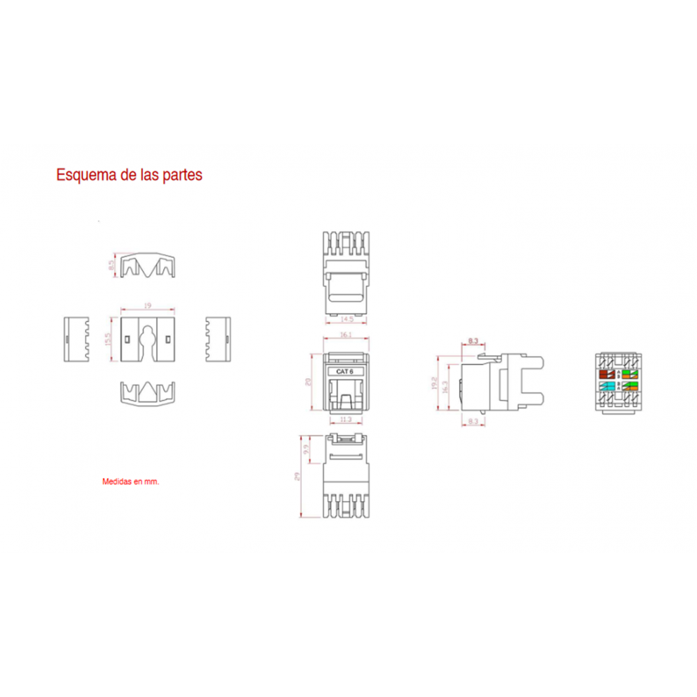 - Tipo: Conector Keystone RJ45 Cat.6 UTP hembra