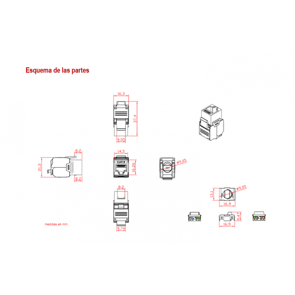 • Tipo: Conector Keystone RJ45 Cat.6 UTP hembra