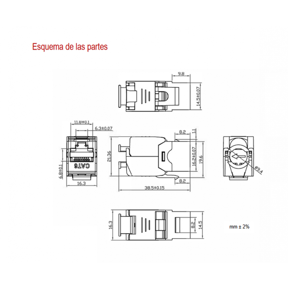 - Tipo: Conector Keystone RJ45 Cat.6 FTP hembra