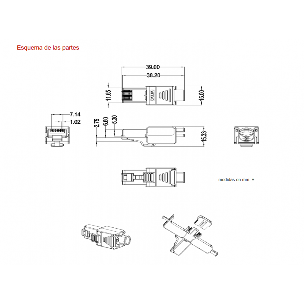 • Tipo: Conector RJ45 Cat.6A FTP macho, blindado