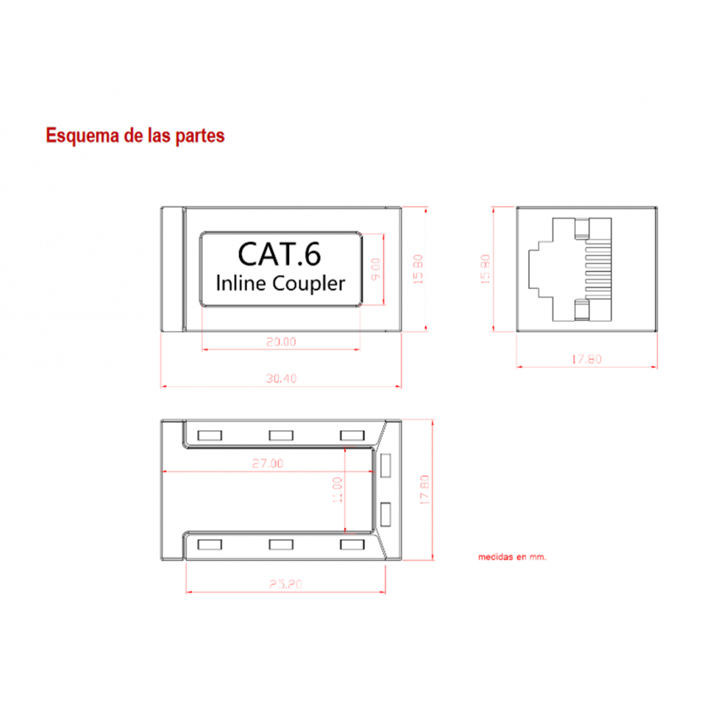 Adaptador inline coupler RJ45 CAT6 FTP Hembra-Hembra...