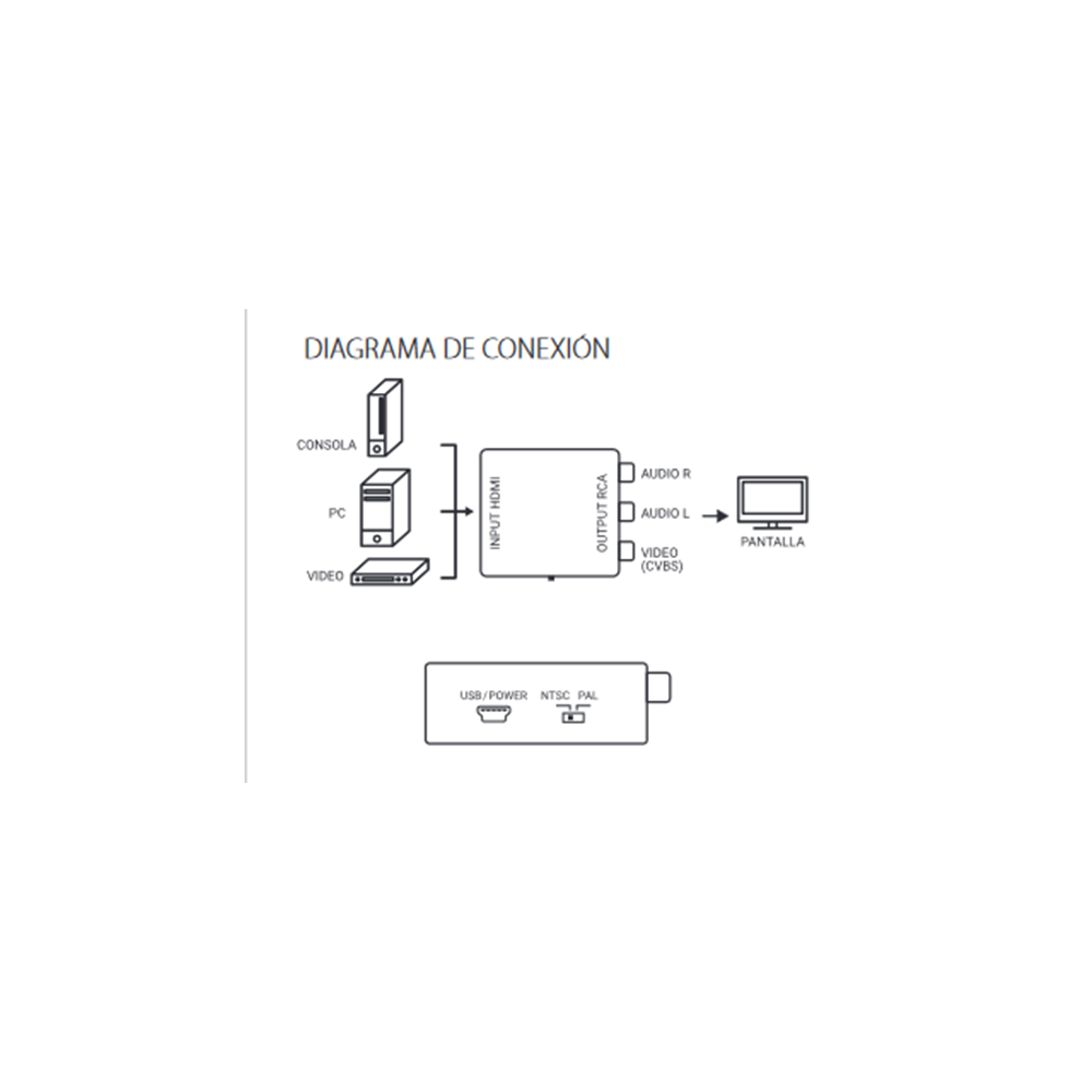• Dispositivo: Convertidor HDMI digital a A/V compuesto 3xRCA