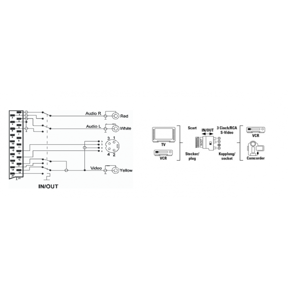 Euroconector a 3 RCA + S-VHS Adaptador Vídeo Con Interruptor IN|OUT 61-0302.10