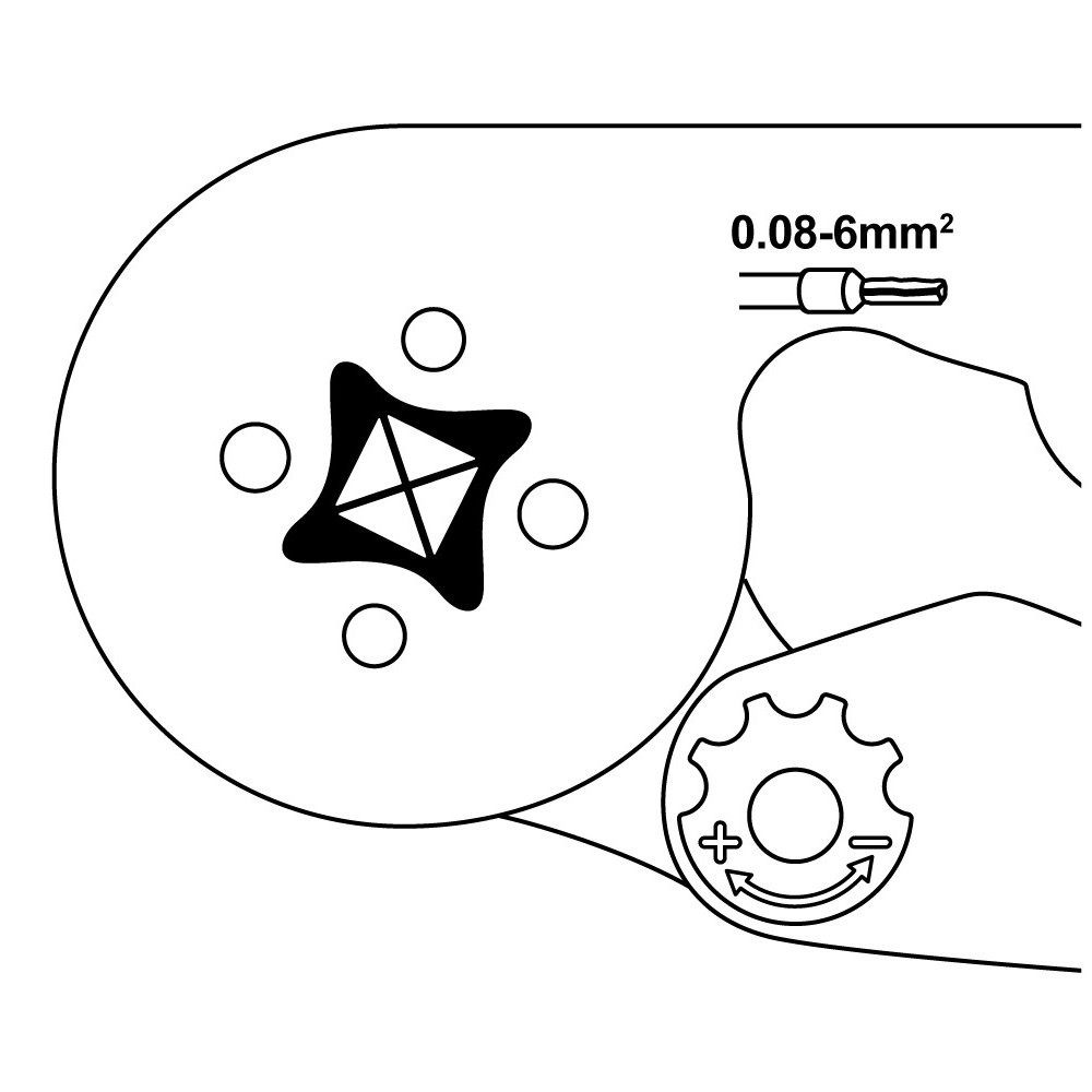 Esta es una herramienta de nuevo diseño para crimpar punteras en cuatro puntos, acabado en cuadrado. Herramienta imprescindible para la construcción de cuadros eléctricos y otras aplicaciones. Ideal tanto en punteras aisladas como no aisladas. Dispone de una gran fuerza de compresión, lo cual nos proporciona una elevada seguridad de agarre en la conexión. Gracias a su diseño ergonómico el esfuerzo es mínimo, con lo cual tendremos una menor fatiga cuando se utiliza en trabajo continuo. Construida con cuerpo de acero S45C y mango de PVC.