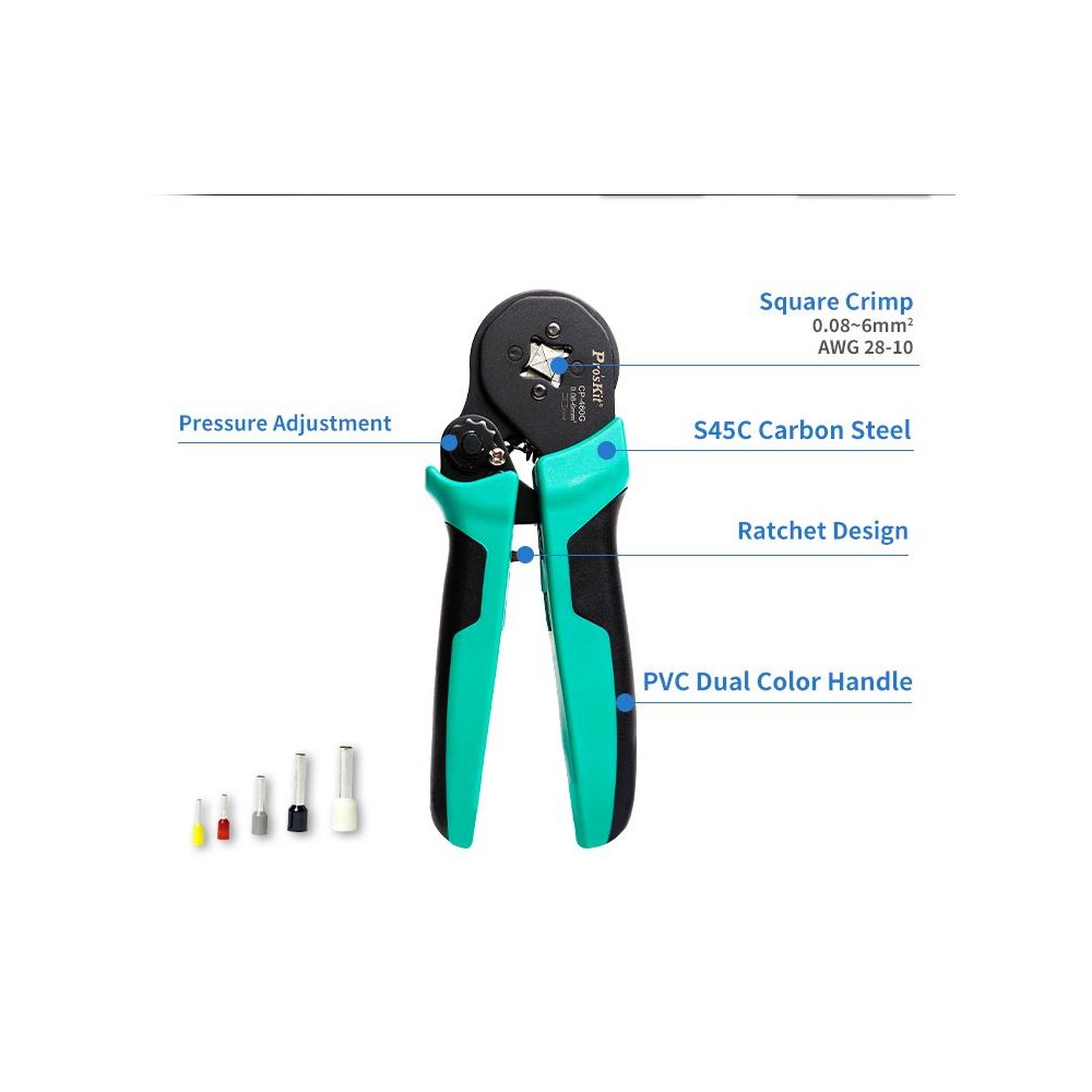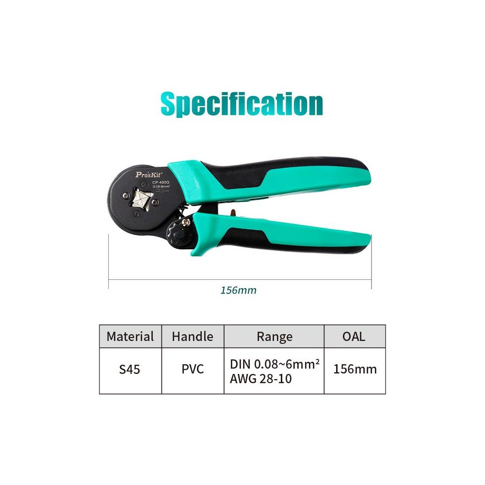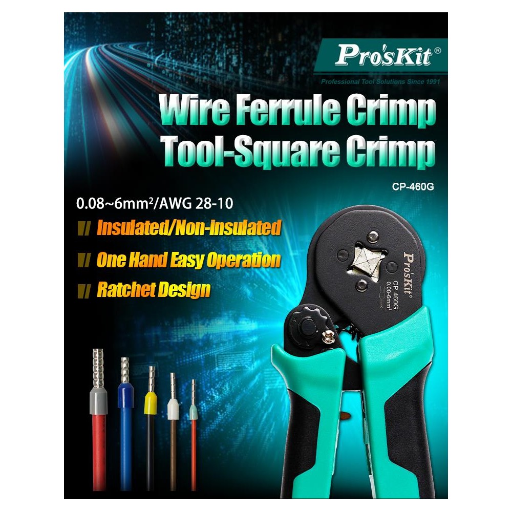CP-460G Crimpadora de punteras cuatro puntos para cables eléctricos de Proskit