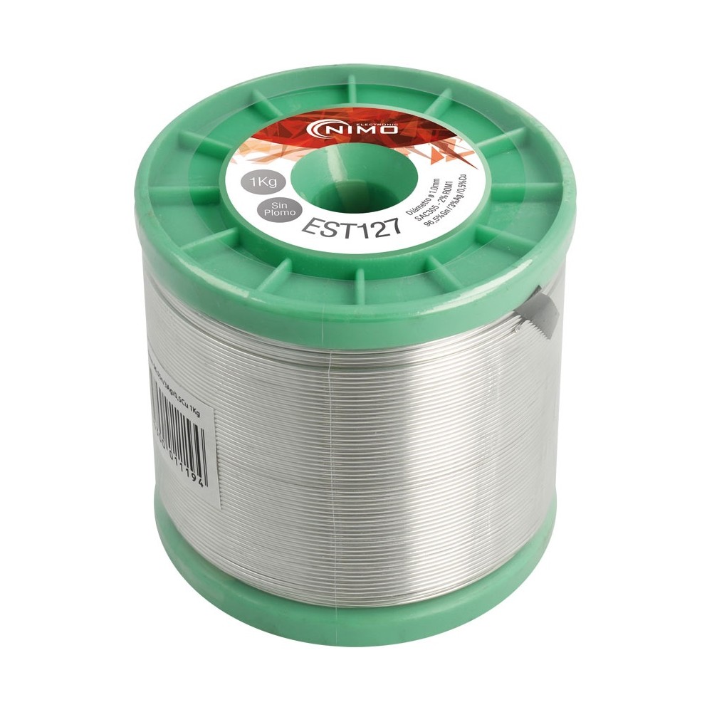 Hilo de estaño Tri-Metal sin plomo 1.0mm 96.5% Sn, 3.0 Ag, 0.5% Cu, Flux 2% FS - EST127
