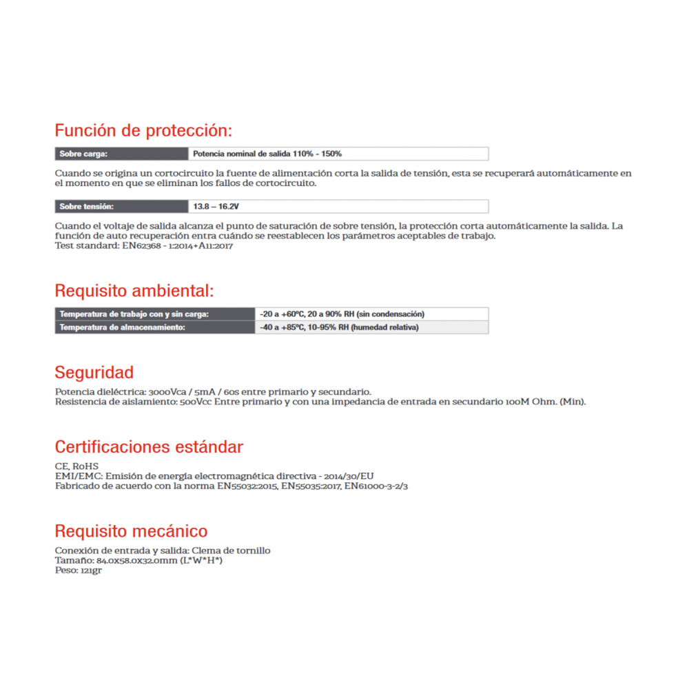 Fuente de alimentación conmutada 12V/24W/2A - ALM301