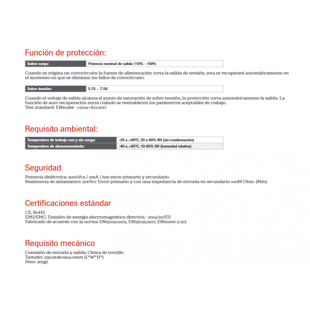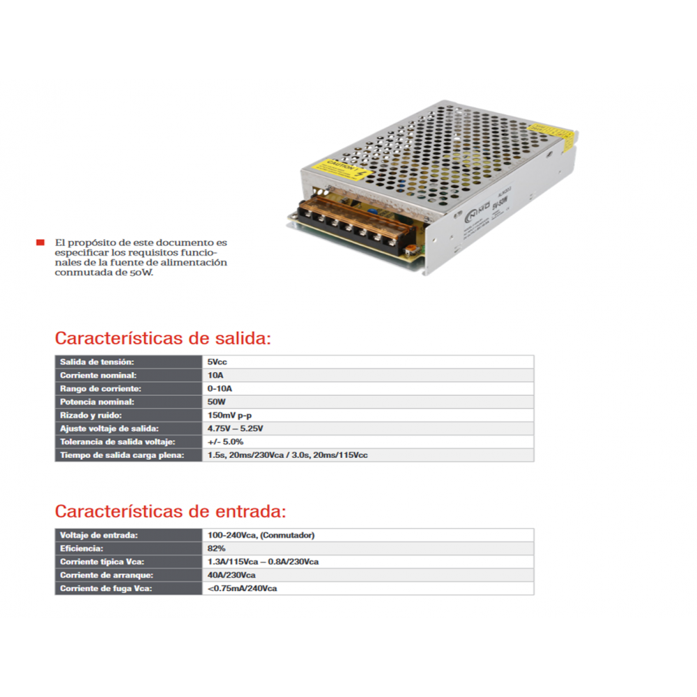 Fuente de alimentación conmutada 5V/50W/10A - ALM303