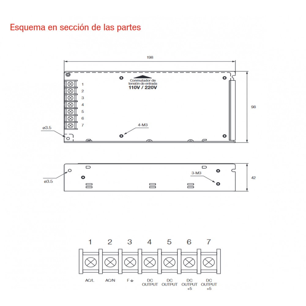 - Voltaje de salida: 12Vcc