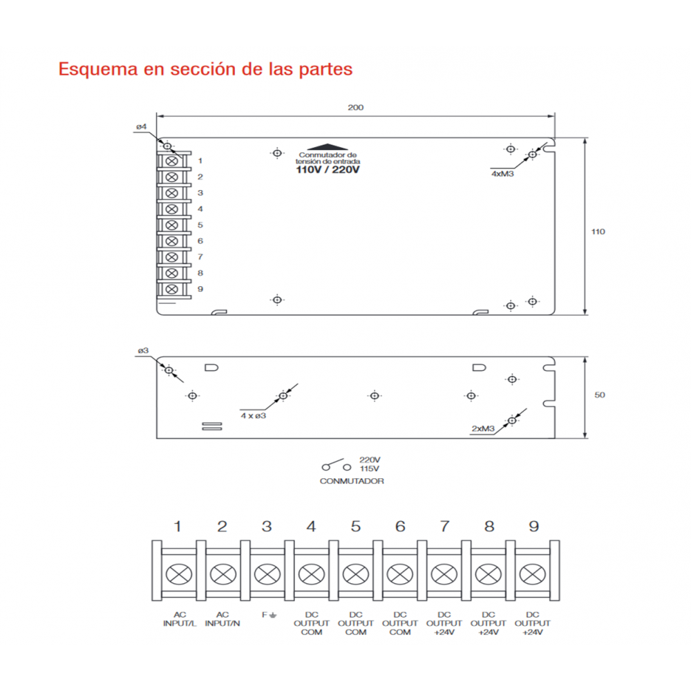 Fuente de alimentación conmutada 12V/240W/20A - ALM316