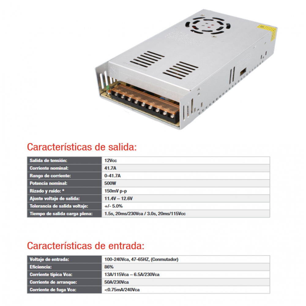 Fuente de alimentación conmutada 12V/500W/41.7A - ALM334