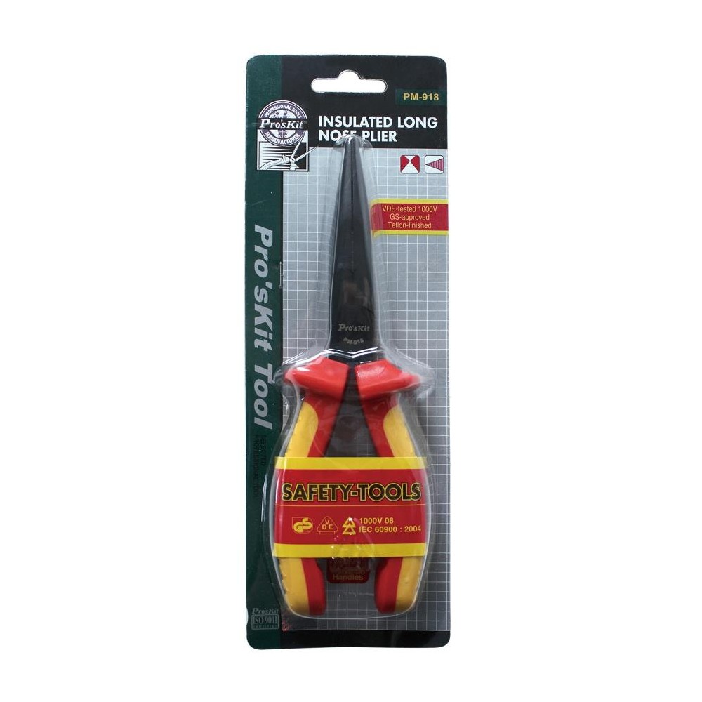PM-918 Alicate de puntas largas y corte para electricista 1000V- IEC 609000/200mm de Proskit